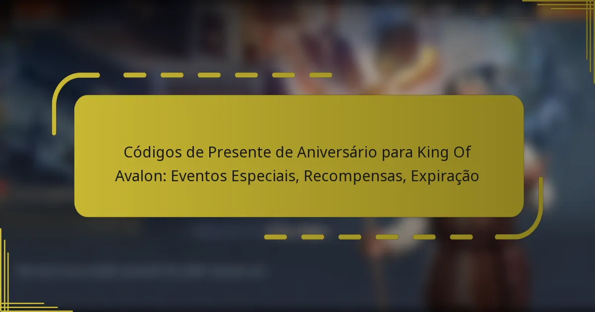 Os códigos de presente de aniversário em King of Avalon proporcionam aos jogadores várias recompensas dentro do jogo que melhoram a sua experiência de jogo. Estas recompensas podem incluir recursos, itens e impulsos que são essenciais para progredir no jogo. Os jogadores devem estar cientes dos tipos de recompensas disponíveis, os seus valores e os detalhes de expiração para maximizar os seus benefícios.