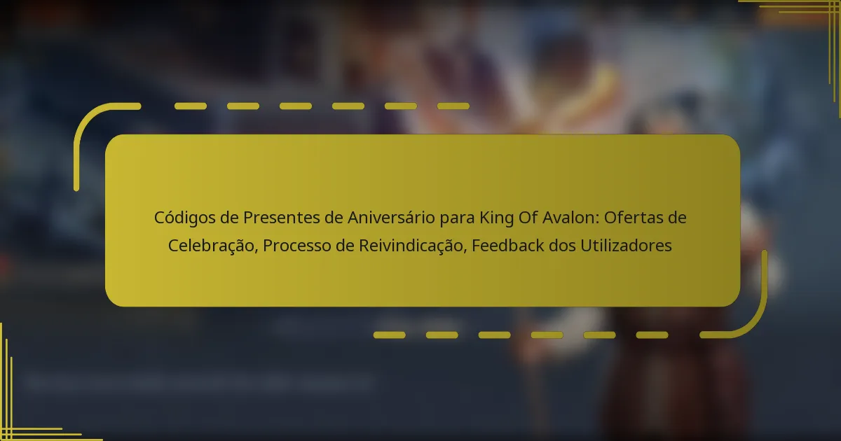 Códigos de Presentes de Aniversário para King Of Avalon: Ofertas de Celebração, Processo de Reivindicação, Feedback dos Utilizadores
